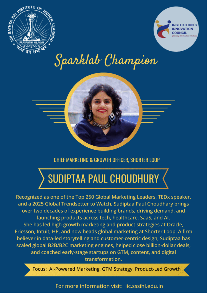 I am a TEDx speaker, AI Marketer, multi-award winning (Woman of Substance, 24-25| Top 250 global marketers, 2023; Top 10 marketing leaders, 2022 by CEO Insights, Women Exec., 2021, ET Now) Sr. techno-marketing executive, board member (IIM-C alumnus/topper| Ex- Intuit, Tally, Ericsson, Oracle, HP, EMC) with 20+ years of in-depth experience in building purpose-driven, measurable, scalable global/local branding & marketing strategies. Includes CI, insight-driven digital marketing campaigns, GTM, demand gen, performance marketing w CAC/LTV improvement, CRM & marketing automation, Brand, PR, ABM, Affiliate, Influencer, Field, Webinar, Events). I work collaboratively w/ CXOs, Sales, Product/Services, HR & Fin. help them achieve organizational goals.