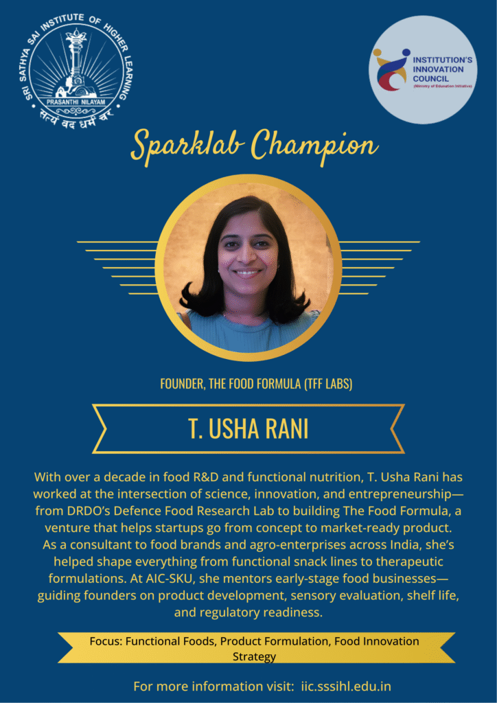 - Startup Mentor, AIC-SKU – Supporting food startups with end-to-end solutions.